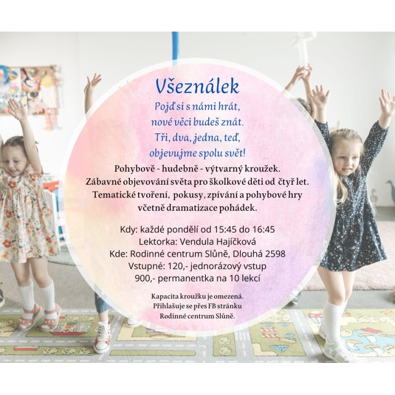 Kapacita programu je omezená, přihlašujte se prosím formou soukromé zprávy na FB stránce "Rodinné centrum Slůně - Česká Lípa". PŘIHLÁŠENÍ je možné pouze přes https://www.facebook.com/CentrumSlune/. Děkujeme za pochopení!