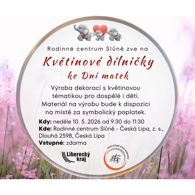 Tvořivé dílničky s květinovou tématikou. Materiál na místě za symbolický poplatek.