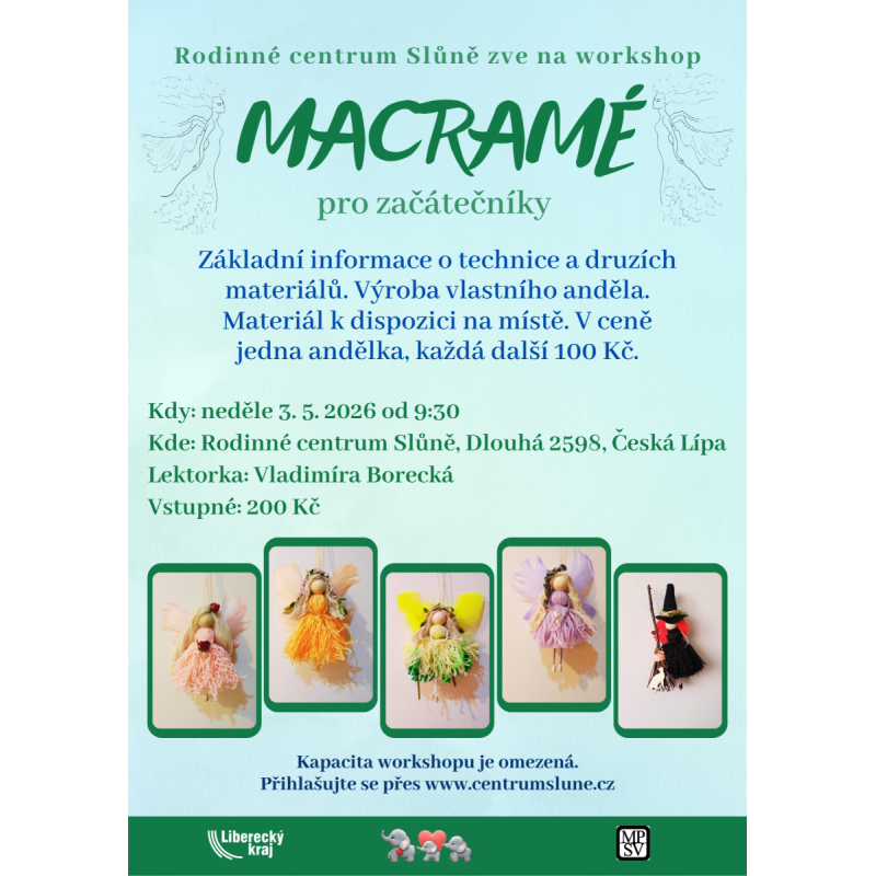 Základní informace o technice a druzích materiálů. Výroba vlastní andělky. Materiál k dispozici na místě. V ceně jedna andělka, každá další 100 Kč.